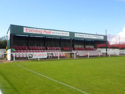 The club play in Barrow-in-Furness, a town I visited back in 2009 for what turned out to be a Christmas cracker. Their home ground is found just off the A590, on the outskirts of the town next to the Barrow Golf Club. The club have played at Rakesmoor Lane since 1972, which has a capacity of 1,750, made up of a 220 seated stand and open standing all around. The stand is at the entrance between the corner flag and the goal, with the clubhouse and changing rooms down one side. There is also some cover on this side but the majority of the roof is missing. Opposite is the team dugouts and there are three sets of lights at each side. Rakesmoor has nice panoramic views of the surrounding countryside, but its exposed location means it’s a bit of a wind trap, so an August visit was ideal.