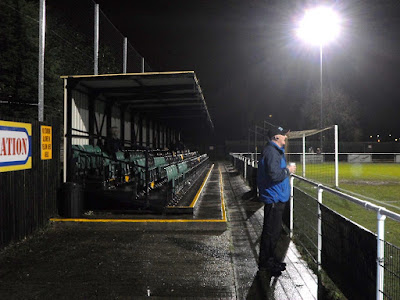 Plenty of seats with a three-quarter pitch length main stand which has been extended at the top end. Opposite there is two diminutive meccano type stands behind the dugouts with terracing at each side. The top goal has a covered stand with four rows of seats. At the turnstile entrance there’s a small covered terrace behind the goal, next to the clubhouse.