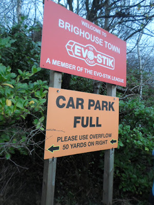 I picked up 100FgC Squad#138 Lee Stewart at noon, then drove down the A1/M1/M62 then into Brighouse via the A644. Arrived in the town at ten minutes to two and called for a liquid pit stop(and a new ‘Spoons tick) at The Richard Oastler. At the game saw my stalker Paul Brockettt plus 100FgC Squad#183 and Scarborough Athletic supporter Neil Daniel.