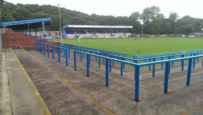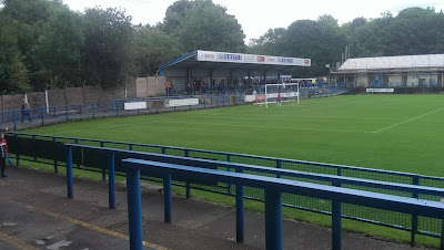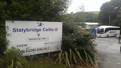 Bower Fold is a ground I’ve been wanting to visit for a number of years. On the eve of this season, I added more grounds to my “T’do list” to tick off in 2018-19, which included Stalybridge Celtic. I picked up Lee & Katie at 10am, arriving in town at 12.40pm, after negotiating my way through the heavy Bank Holiday traffic. We parked up next to the ground and walked into the town centre, heading straight to the Society Rooms for our dinner. After our bellies were filled I nipped away to tick off a couple of GBG pubs before we all met up inside the ground.