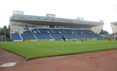 For this game the only survivor from the old era was opened; the Main Stand on the west side of the ground, which also has a quartet of floodlights on the roof, which are more prominent in appearance. The stand is smaller than the rest with the blue seats split into three small sections. The team dugouts are on this side, changing rooms and the Sports Bar (opened 2004) towards the south side of the stand. The toilets and refreshment bars are tucked under the stand and I especially liked the memorabilia and programmes on display as I bought my Killie Pie and half-time cuppa.