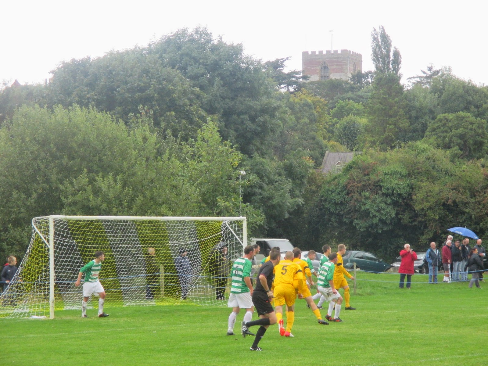 The entrance to the football ground at Roe Plas Meadows is through a parkway where the pavilion and car park is at one side of the pitch. There are a couple of slap-dash dugouts erected on this side with the rest of the ground roped off from the grass verges, with some fancy yellow goal nets. The club were very friendly and they made every effort to make us welcome. They were also very grateful that the threatening forecast of heavy rain had held off throughout our stay.