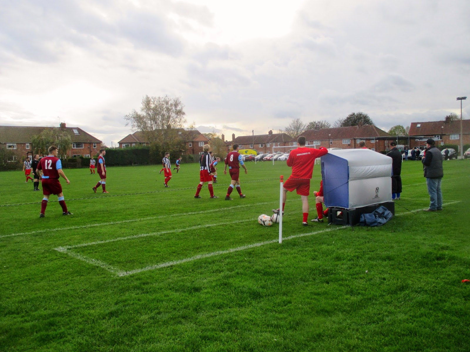 The bus to Osbaldwick was spot on. I walked down to Piccadilly where the number 8 service was just pulling in and within 10 minutes I arrived on Hull Road, then it was a 5 minute walk through the housing estate to The Leyes. On arrival I was disappointed to find the Osbaldwick Sports Club closed because I was naturally choking for a pint and after missing breakfast I still hadn’t been fed. The ground is shared with the cricket club so the football pitch is at the near side in front of the car park. The pitch is roped off with temporary tent style dugouts at the side. Just before kick off there was around half a dozen of us waiting for the game to start, I was beginning to think that this could be my smallest attendance, beating the 8 at Heaton Stannington in 2007, but once the match got under way there was about 50 in attendance which swelled to over 70 when I did the half an hour headcount.